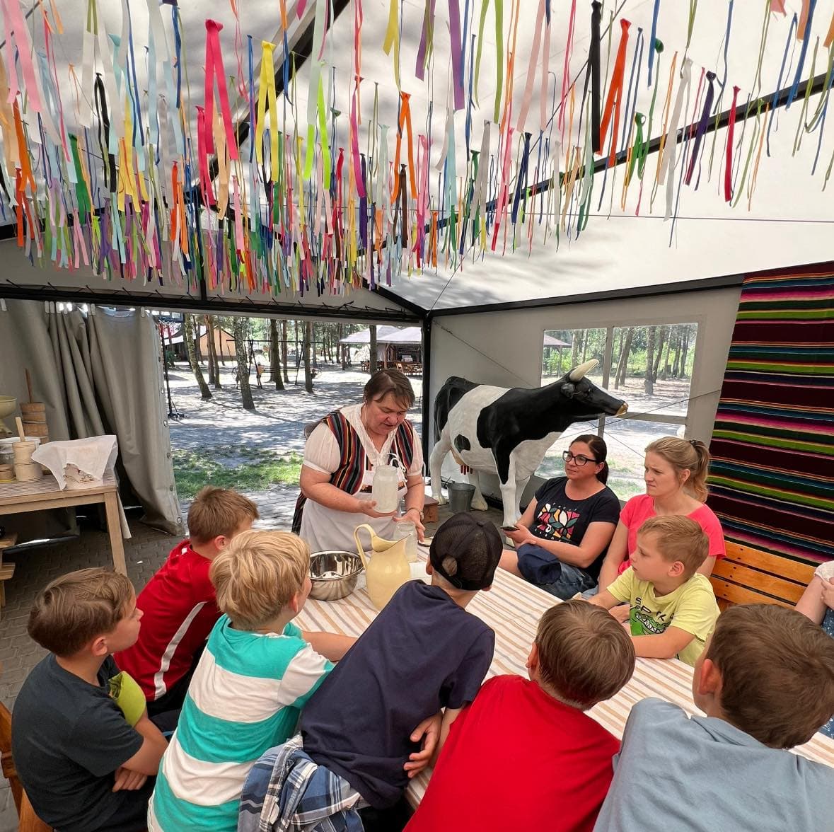 • 🕘 godz. 9:00 – śniadanie 🍳🥐 📦 Przed wyjściem zabieramy drugie śniadanie 🥪, a jeśli pozostajemy na terenie gospodarstwa, cały czas dostępny jest tzw. “kącik głodomora” 🧺, gdzie dzieci mają do dyspozycji: 🧀 sery, 🍓 dżemy, 🧈 masło, 🍖 wędlinę, 🍞 chleb. • 🕙 godz. 10:00 – kwaszenie kapusty i ogórków 🥒, lub zajęcia z pszczelarzem 🐝 • 🕑 godz. 14:00 – obiad 🍽️ • 🕐 godz. 13:00 – gry i zabawy z dawnych lat 🎲🏸 • 🕒 godz. 15:00 – wyplatanki z siana ptaszków 🐦 • 🕔 godz. 17:00 – mleko i jego przetwory 🥛🧈 • 🕖 godz. 19:00 – kolacja tradycyjna 🍴 lub w formie ogniska 🔥🌭 • 🕗 godz. 20:00 – zawody sportowe ⚽, strzelanie z łuku 🏹
