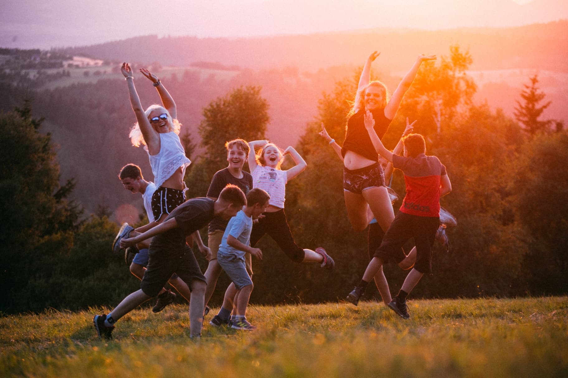 Games, games, sports, active leisure in scenic nature circumstances