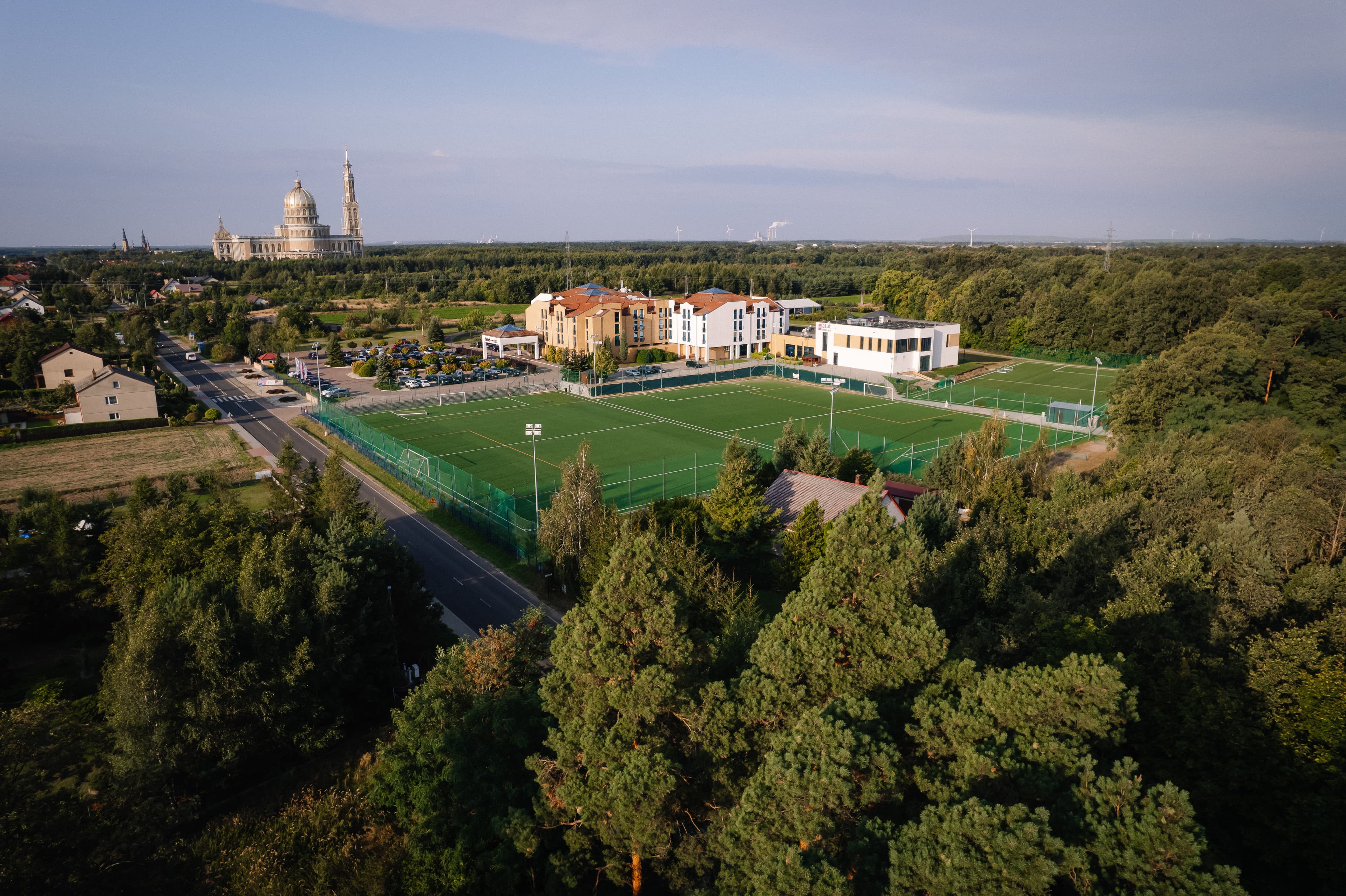 Do dyspozycji Naszych gości posiadamy: - 4 boiska o sztucznej nawierzchni – 45 x 79 m/ 43 x 79 m/ 96 x 66 m/ 70 x 47,5 m - 3 boiska z nawierzchnią naturalną w odległości do 10km od hotelu. Transport po stronie hotelu - Basen - Siłownia - Sale taneczne - Boisko 16 x 32m do piłki siatkowej/nożnej na piasku - Boisko do Koszykówki - Boiska do siatko nogi - Kręgielnia, bilard, tenis stołowy