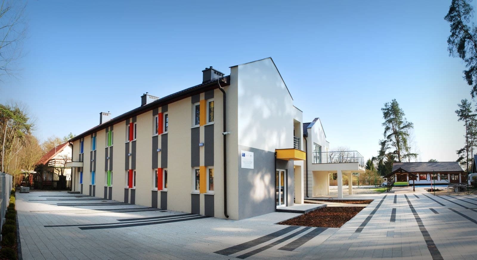 located a 15-minute walk from the beach. 3, 4, 5, 6-bed rooms with bathrooms. In the facility there is a large swimming pool, a small swimming pool, climbing rocks, a 400 m2 multifunctional pitch with artificial grass equipped with football goals and 4 stands with basketball baskets, a wooden common room, a sports tent, a beach playground, a playground, and a fire ring.