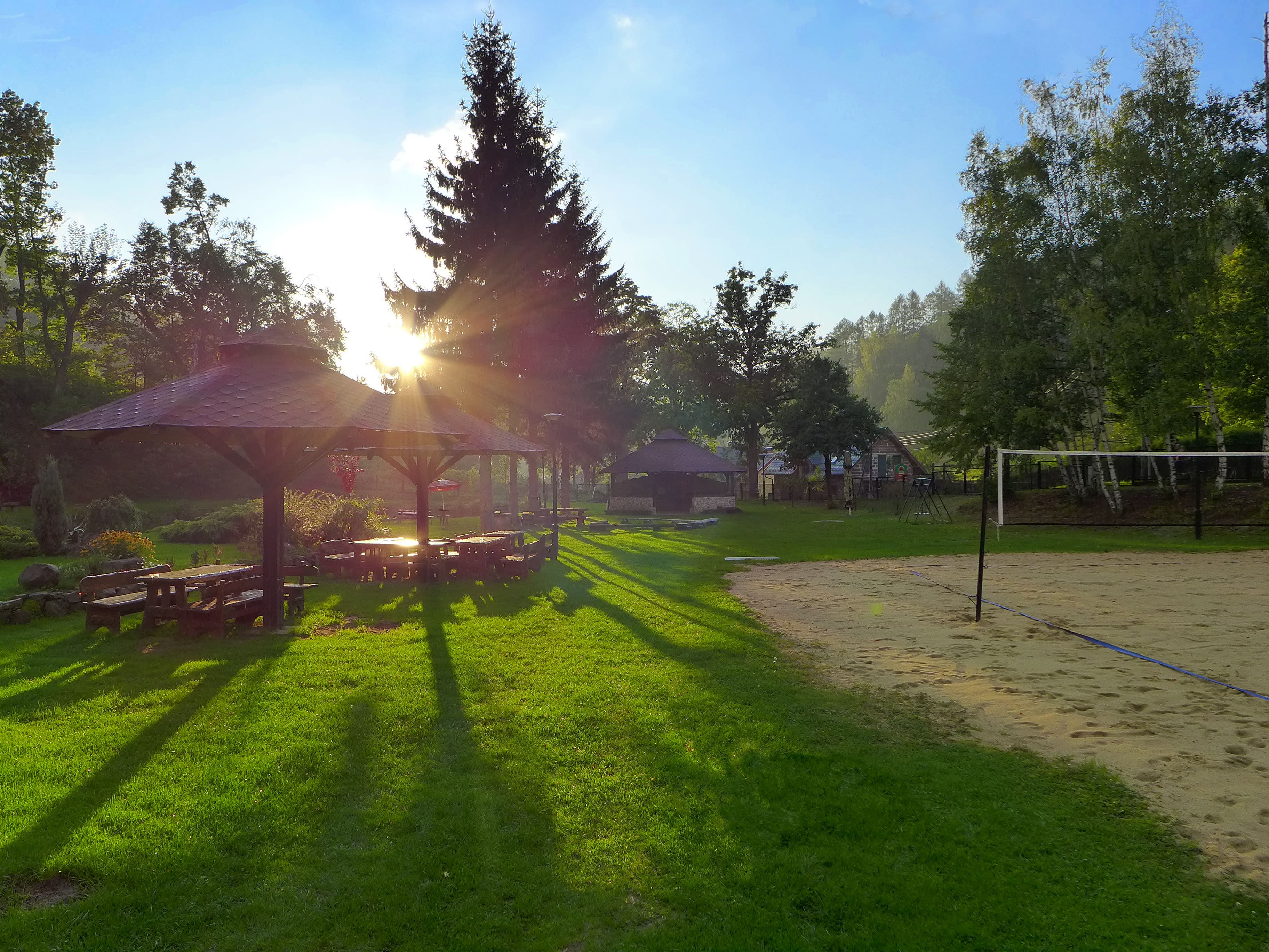 The hotel has gazebos with wooden benches and tables that provide a cozy place to relax in the fresh air. The gazebos are covered, so you can use them regardless of the weather, enjoying peace and nature.
