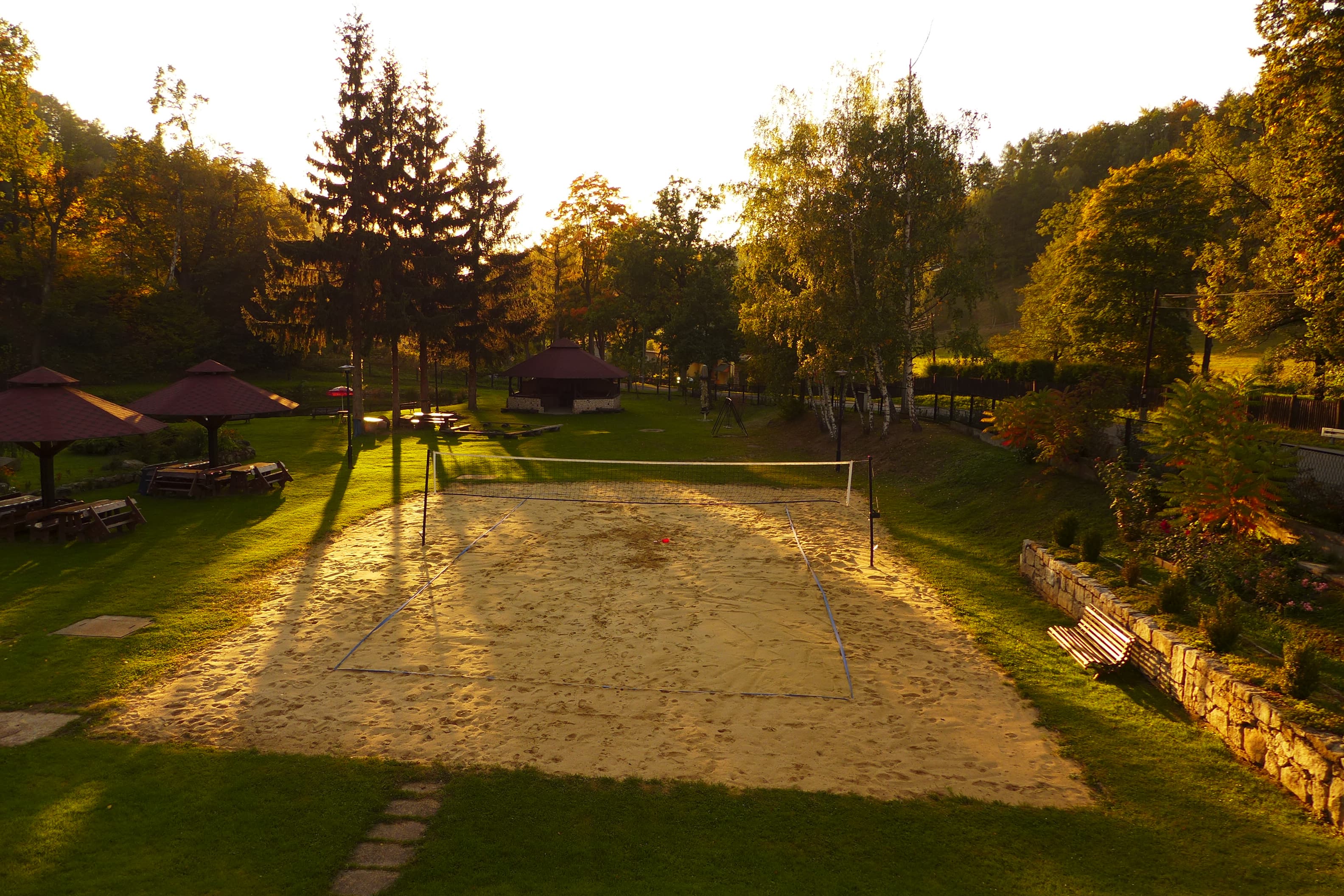 The hotel offers an outdoor volleyball court, which is located in a picturesque setting, surrounded by greenery. The pitch is covered with clean, golden sand, ideal for recreational outdoor play.