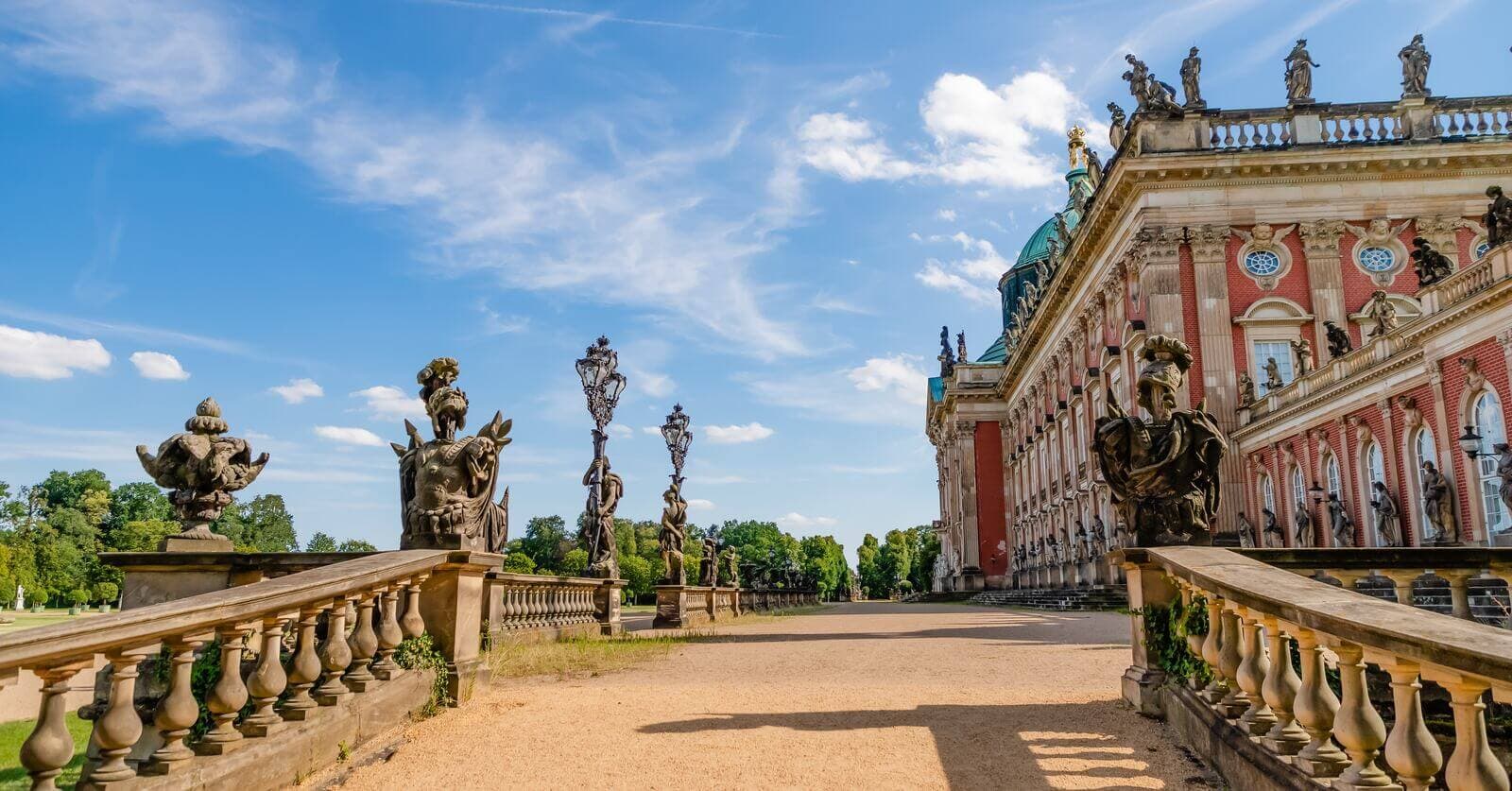 Poczdam, prawie 200 – tysięcznego miasta leżącego niedaleko Berlina i będącego stolicą kraju związkowego Brandenburgii. Skupimy się na Parku Sanssouci z rokokowym Nowym Pałacem Hohenzollernów, wzniesionego w połowie XVIII wieku na zlecenie króla Prus Fryderyka Wielkiego. Nie pominiemy również barokowego Pałacu Charlottenhof. Przepiękny park rozciąga się na powierzchni 300 ha i znajduje się w nim, oprócz oczywiście potężnych, królewskich rezydencji wiele prawdziwych perełek architektury, takich jak dom chiński, oranżeria, historyczny młyn czy smoczy domek. Oczywiście trudno nie wspomnieć o przepięknie kwitnących ogrodach i tarasach.