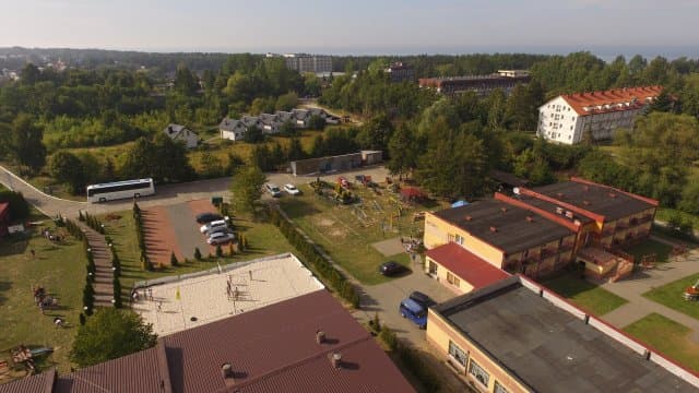 Nowoczesny obiekt położony w spokojnej dzielnicy Jastrzębiej Góry na zielonym terenie, 250 m od morza. Ośrodek jest ogrodzony, monitorowany i bezpieczny. Świeżo wyremontowane, 3- i 4-osobowe, pokoje z pełnym węzłem sanitarnym. Do dyspozycji Uczestników boiska sportowe, plac zabaw, minizoo, wiata grillowa, sale warsztatowe, kręgielnia, winda, klimatyzowana stołówka. Na terenie ośrodka działają telefony wszystkich sieci.