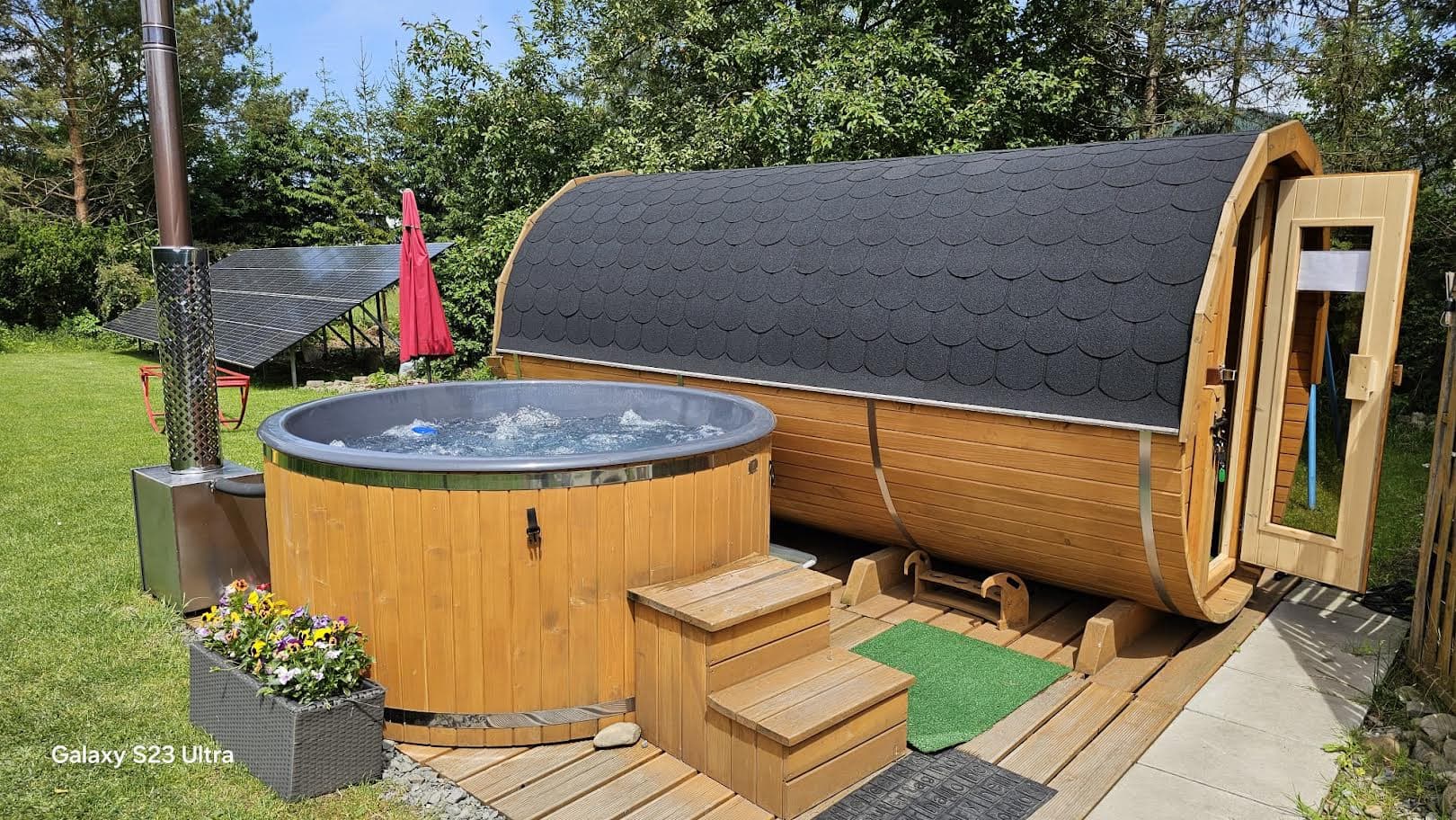 Podgrzewana świerkowa bania w ogrodzie "Jak u mamy"