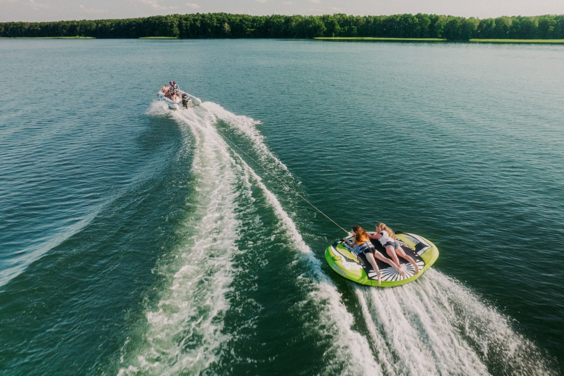 Holowanie na dmuchanym kole za motorówką
