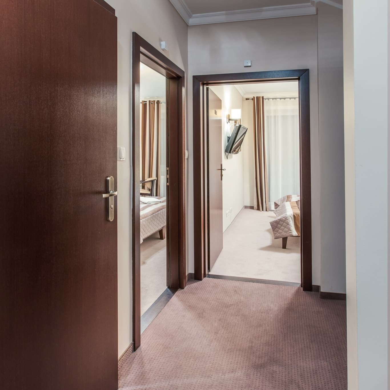 Naszym gościom oferujemy ponad 200 miejsc noclegowych, mieszczących się w dwóch budynkach. W naszej ofercie posiadamy pokoje 2‑osobowe, 4- osobowe, apartamenty oraz pokoje typu Studio. Istnieje możliwość przygotowania dostawek. Wyposażenie : Wifi Biurko Ręczniki Szafa Sejf Łazienka z prysznicem Zestaw kosmetyków Ze względu na różne warianty pokoi, ich wyposażenie może się od siebie różnić