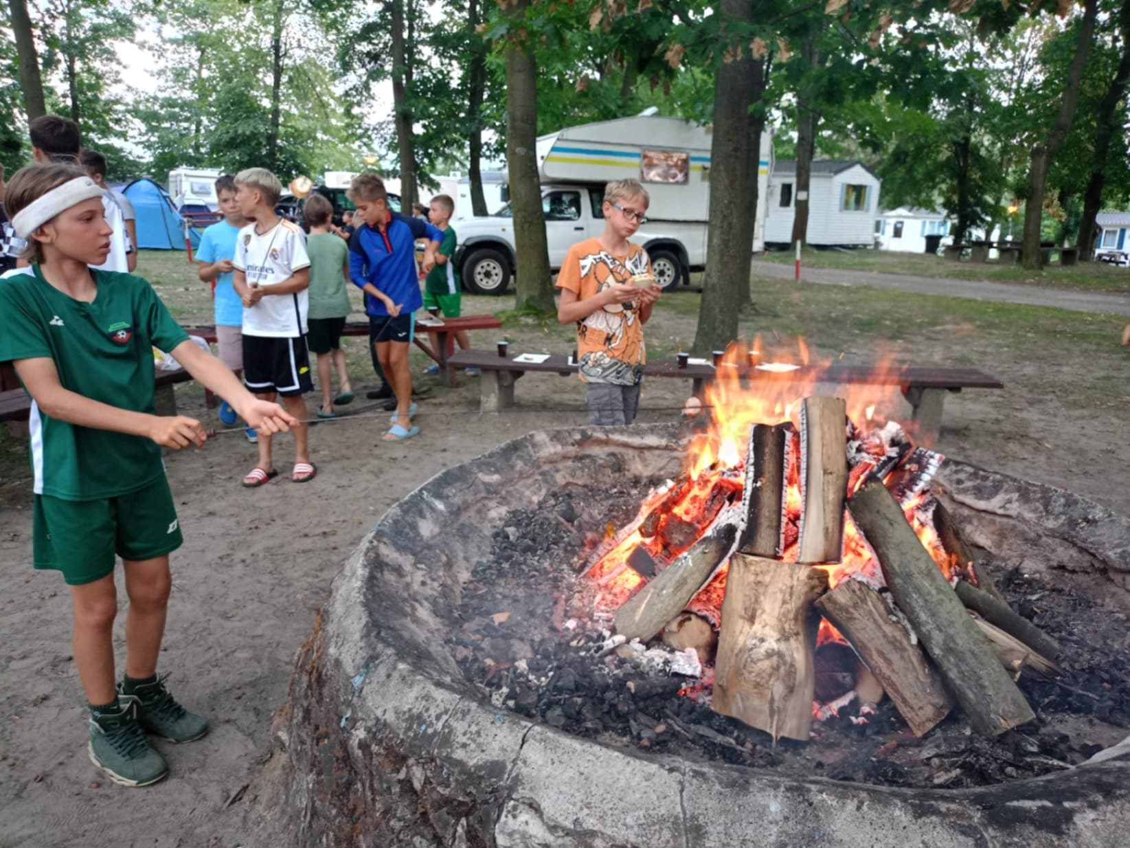 Ognisko i pieczenie kiełbasek.