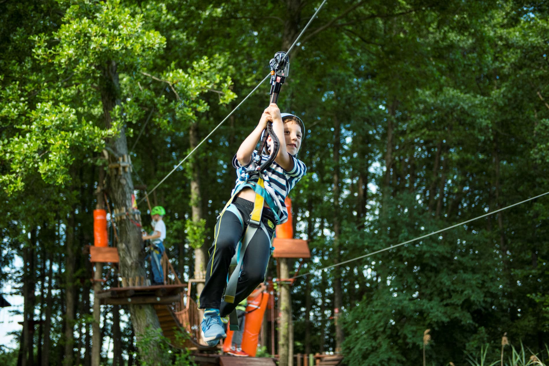 Na terenie Farmy znajduje się profesjonalny park linowy. Do dyspozycji naszych Gości oddajemy trzy trasy o różnym stopniu trudności. Stopień trudności trasy zależy od wieku oraz wzrostu uczestnika zabawy.
