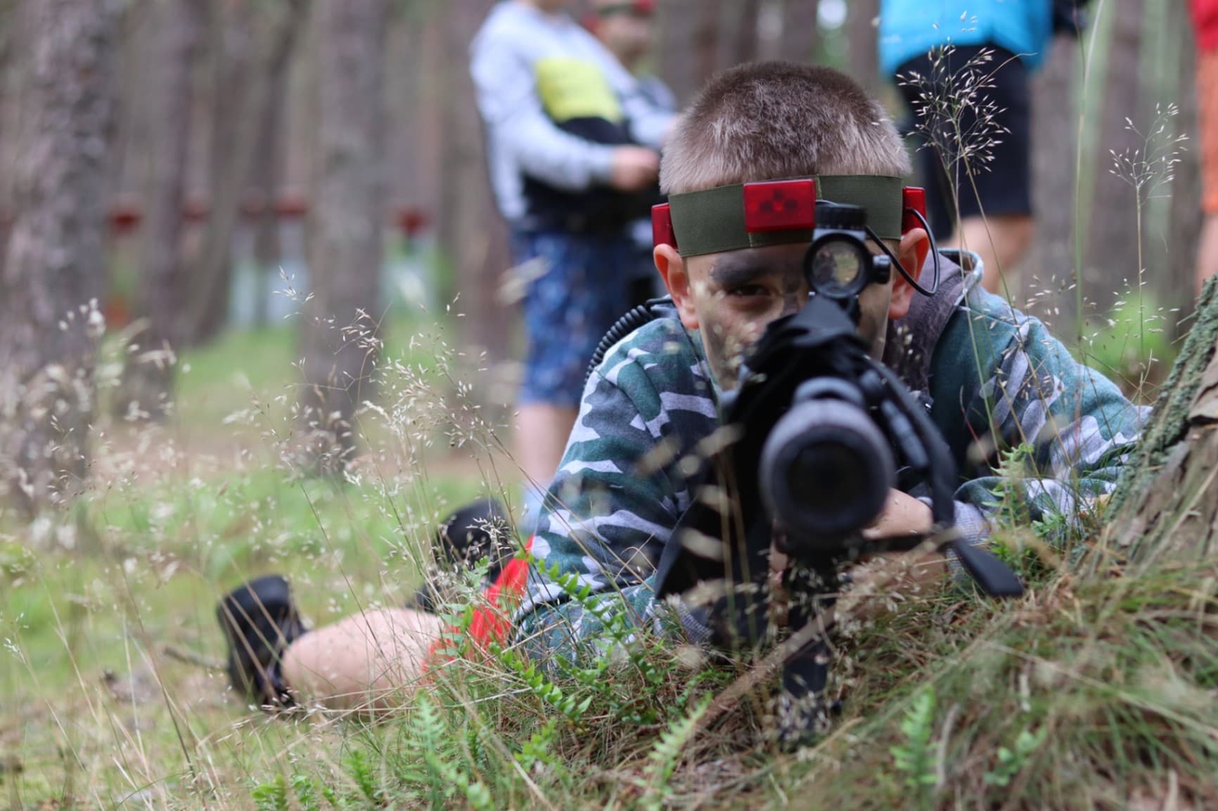 To świetna zabawa dla dzieci, młodzieży, jak i dorosłych! Wszyscy uwielbiają potyczki LASER TAG, szczególnie że sprzęt, którym dysponujemy jest najwyższej klasy. W pełni oddane repliki karabinów szturmowych HK G36C sprawiają, że uczestnik czuje się jakby wszedł do gry komputerowej. Ciekawie ułożone scenariusze, kamuflaż i miejsce przygotowane pod nasz poligon sprawią, że uczestnik wczuwa się w rolę żołnierza. Gramy również w lesie, budujemy szałasy, znaczymy terytoria. Sprzęt jest naszą własnością i korzystamy z niego na całego!